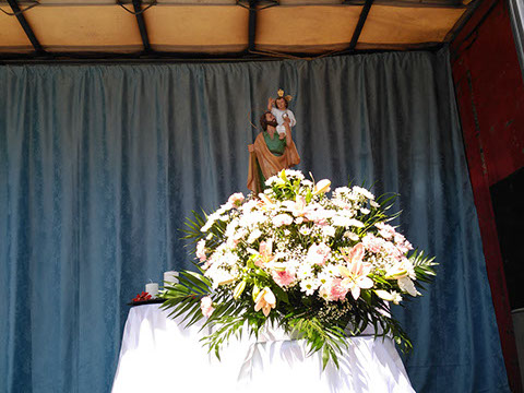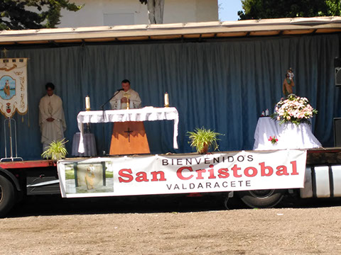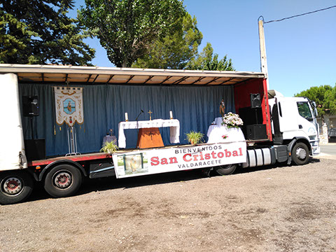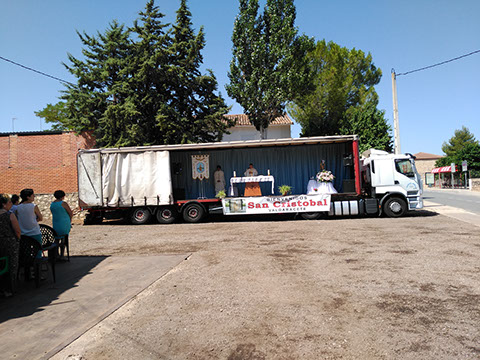 El domingo se celebra la solemne misa en honor al patrón de los conductores San Cristóbal. Bonito acto celebrado en la caja de un camión creando un ambiente propicio para su desarrollo.